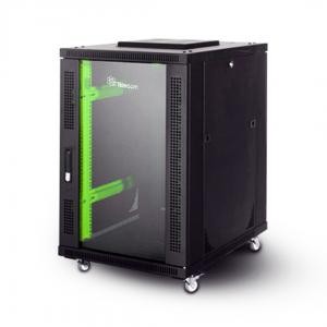 به بازار تجهیزات شبکه عرضه می شوند . بدنه ی رک های ایستاده 17یونیتبا رنگ مشکی الکترواستاتیک سمباده ای ضد خش پوشش داده شده است. رک ایستاده 17 یونیت عمق 80 جزء رک های سایز بزرگ محسوب می شود و برای شبکه های متوسط و بزرگ انتخابی مناسب می باشد. رک ایستاده 17 یونیت مطابق استاندارد در ابعاد 19 اینچ و با درب جلوی شیشه ای فریم دار سیکوریت نشکن با قفل سوئیچی ، درب عقب فلزی قفل دار سوئیچی و درب های جانبی بازشو از جنس فلزی قفل دار به صورت قفل کشویی تولید می شود. پنل های بازشو قفل دار دسترسی به تجهیزات داخل رک را راحت تر می کنند . رک ایستاده 17یونیت دارای 1 عدد فن بوده و از قابلیت نصب تا 4 عدد فن برخوردار می باشد ، همچنین بسته به نیاز مشتری 4 عدد پایه چرخ دار فلزی به همراه قفل چرخ برای آن نصب می شود .