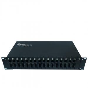 شاسی رک مونت 19 اینچ 2 یونیت یک وسیله اقتصادی و متمرکز برای جمعآوری مدیا کانورترها است. این شاسی دو مدل دارد، 14 اسلاتی و 16 اسلاتی که اکثرا در اتاق تجهیزات قرار میگیرد و منبع تغذیه دوگانه و سوئیچ اتوماتیک دارد. اندازه نرمال این شاسی 2 یونیت است و نوع 14 اسلات آن برای ابزار مستقل و نوع 16 اسلات آن برای سبک کارتی است. این شاسی هم در نصب انعطاف پذیر است و هم یک راه حل مقرون به صرفه است.